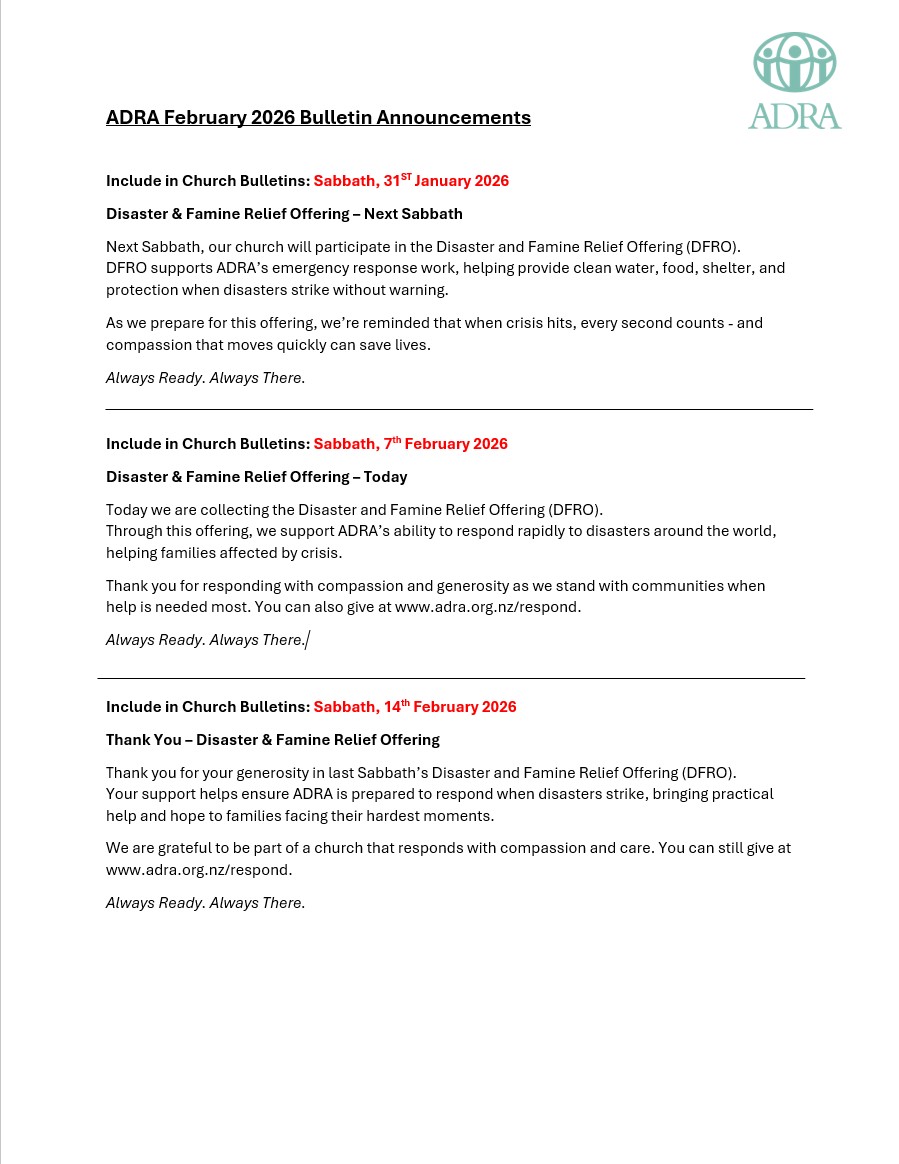These resources are available to help you promote ADRA’s special disaster and famine relief offering at your local church. If you need any extra support, please reach out to our team at any time.